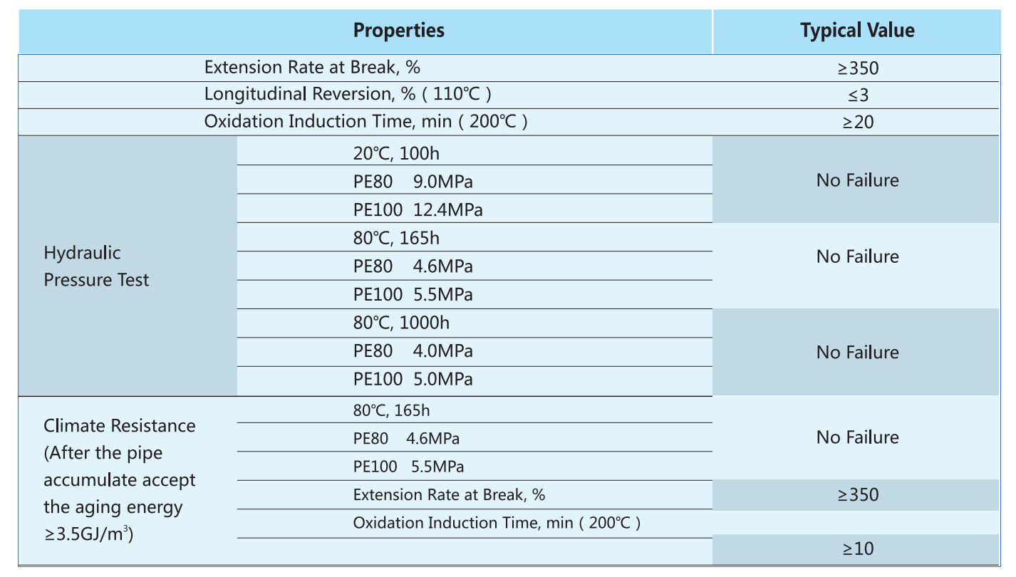 Standard: ISO 4427-2, EN 12201-2,AS/NZS 4130, BS 6920, GB/T 13663.
